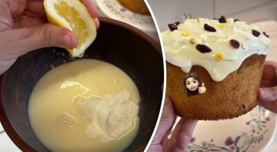 Această glazură devine netedă, albă și ușor cremoasă la gust și, cel mai important – nu este lipicioasă și arată frumos pe produsele de patiserie festive.