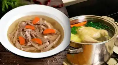 Se amestecă gelatina și apa, se lasă să stea puțin, se adaugă în bulion, se încălzește pe foc și se amestecă bine.