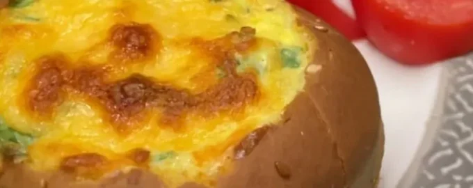 Omletă în chiflă cu piept afumat