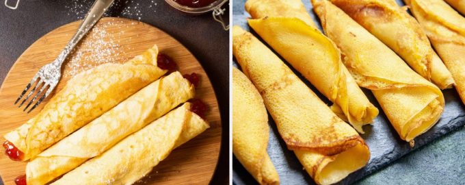 Clătite regale pe lapte – rețetă cu trei umpluturi