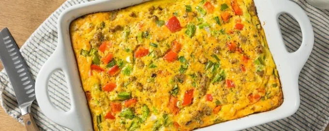 Pentru preparare veți avea nevoie de orice cârnați sau șuncă, ouă, făină, agent de fermentare, unt, ardei gras, ceapă verde, condimente și o formă de copt.