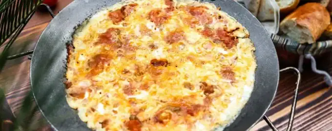 - Se acoperă tigaia cu un capac și se gătește până când brânza este complet topită.