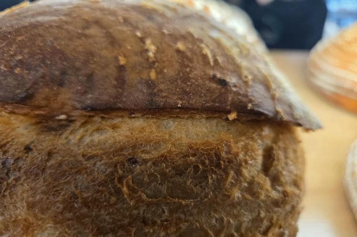 Pâinea are o crustă groasă, crocantă și un miez perfect.