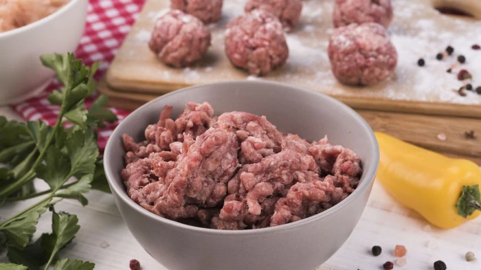 - Cinci sute de grame de carne tocată de porc și vită;