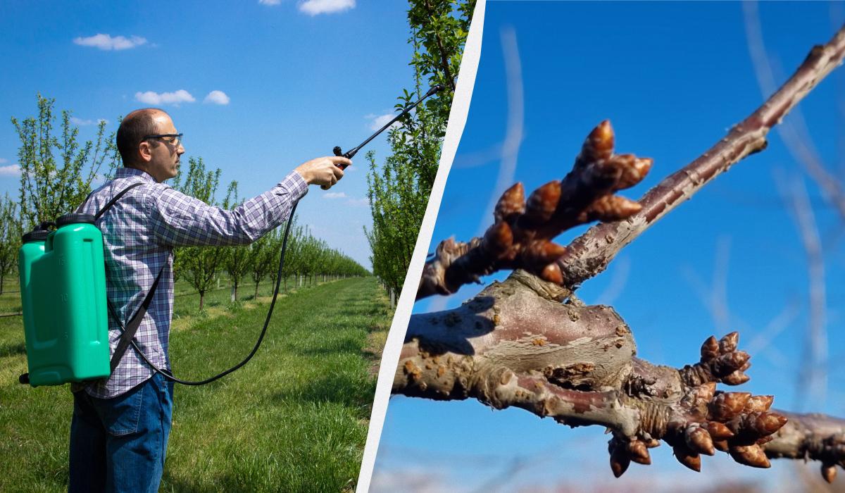 Potrivit autorului, primul tratament al arborilor în primăvară se efectuează pe mugurii închiși, dar deja umflați. Cele mai bune condiții pentru început sunt temperaturile medii zilnice de +4 până la +8°C, deoarece în acest moment dăunătorii sunt încă imobili și, prin urmare, preparatele vor fi cât mai eficiente posibil.