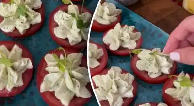 O rețetă pentru o gustare cu roșii foarte gustoasă. Link copiat Aperitiv rapid care va deveni vedeta mesei / Colaj: My, foto: capturi de ecran din videoclip Roșiile.