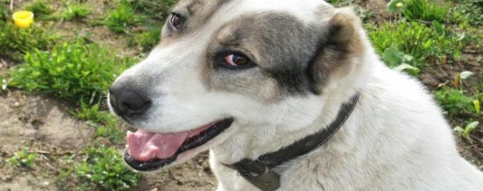 Imaginea este o pictură în ulei: un câine care ronțăie fericit carne se oprește brusc într-o plimbare și începe să mestece fire prăfuite de iarbă ca o vacă.